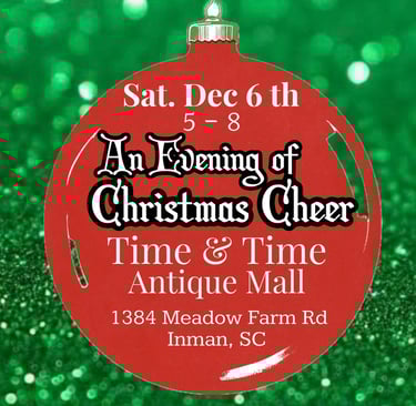 Our open house, An Evening of Christmas Cheer, is THIS Saturday Dec 6th 5-8! Need vintage decorations, and we all do… we have it! Ready to give affordable gifts…we have it! Want to slow down and enjoy the season with music and sips & nibbles… we will have that too! We want to see you there . ( We’ve heard Santa shops at Time and Time Again Antiques too!)